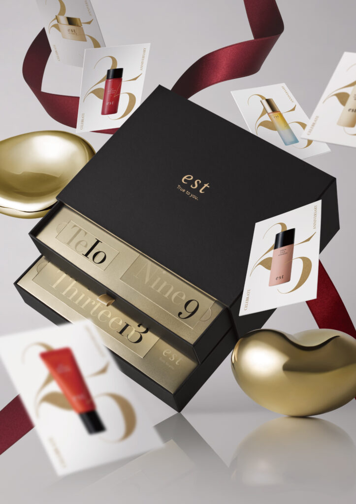 エストのブランド誕生25周年を記念したホリデーコレクションは、スキンケアアイテムの現品とミニサイズを含む計13品が入ったアドベントカレンダー。美容液の現品3本から、人気の洗顔や基本ケア、スペシャルケアまでさまざまなアイテムがそろっています。
