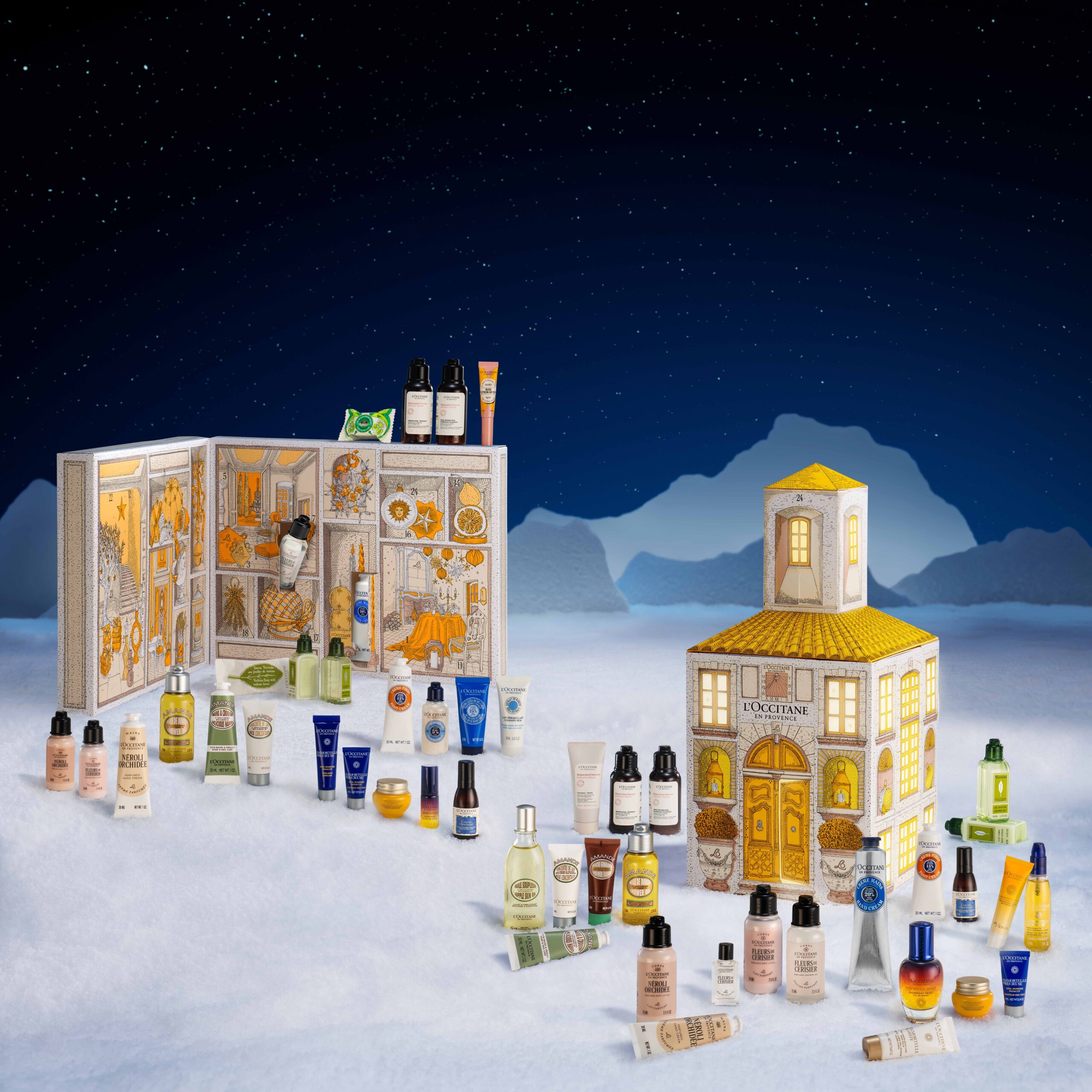 ロクシタンの2025年アドベントカレンダーは2種類。フランスの美しい暮らしの文化「アール・ド・ヴィーヴル」を象徴するプロヴァンスの邸宅をイメージしたボックスに入っています。復刻限定アイテムをはじめ、ボディケア、スキンケア、ヘアケア、フレグランスなどが24点詰まったカレンダーです。